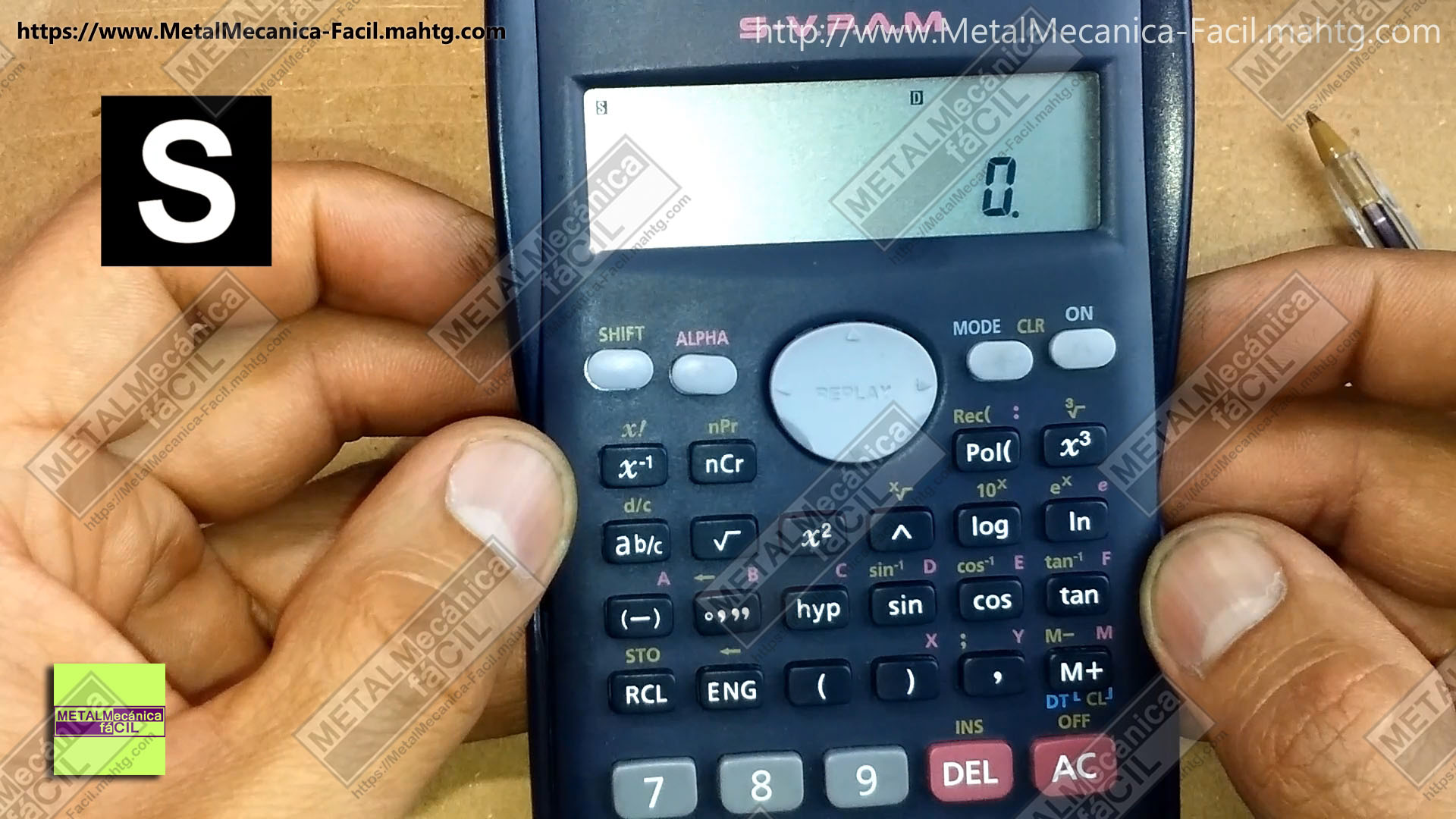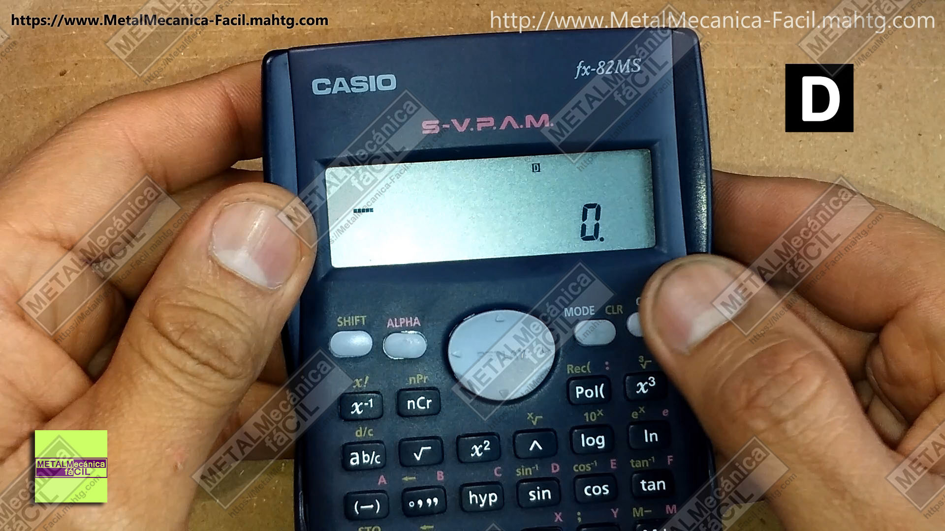 Entonces, usando la calculadora, hay que tener en cuenta que debe estar habilitada la opción “D” en la parte superior de la pantalla, lo que significa que el modo de ángulos de la calculadora está en grados, minutos y segundos.