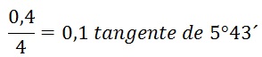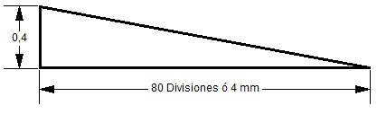 Si con una división queremos disminuir 1/100 sobre el diámetro, 80 divisiones o una vuelta completa del husillo de 4 mm., la disminución será de 80 veces 1/100 u 8/10 sobre el diámetro ó 4/10 sobre el radio, podemos buscar el ángulo de inclinación del carro con los datos que conocemos.